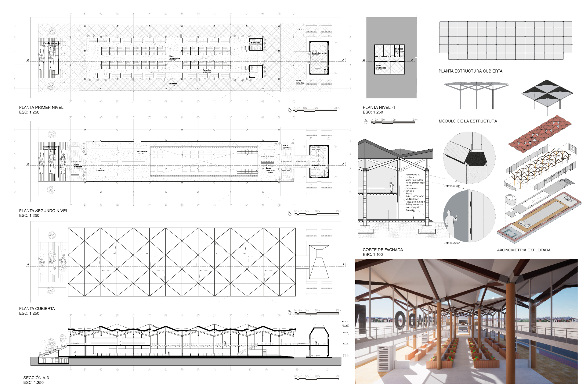 El proyecto consistió en una plaza de mercado ubicada en la ciudad de Bogotá, diseñada para responder a las necesidades de la comunidad del sector del Parkway. Se desarrolló a partir de una estructura base que organizó los espacios comerciales y de circulación, creando un lugar funcional y de encuentro para los habitantes del área.
